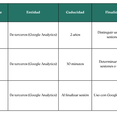 4. LISTADO DE COOKIES UTILIZADAS EN ESTE SITIO WEB