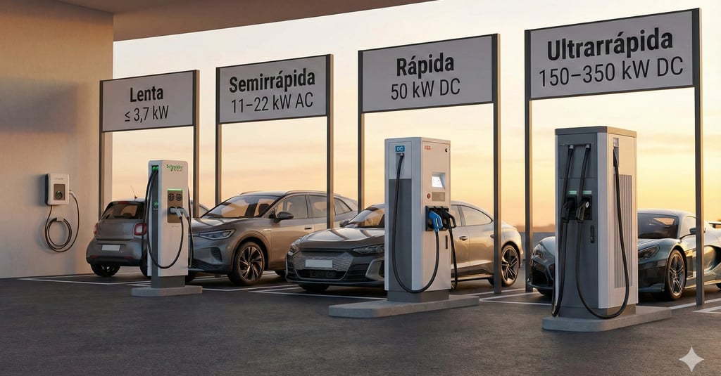 En el mundo del vehículo eléctrico se suele hablar de distintos “tipos” de carga, según la potencia y el uso principal.